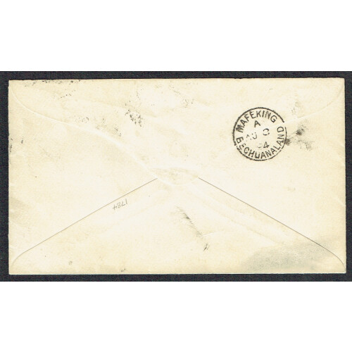 1894 ( 7 Aug) Commercial cover Vryburg to Mafeking bearing GB ovptd ½d vermilion as four singles to pay 2d rate tied 555 duplex cancels and VRYBURG cds alongside, arrival backstamp. Fine and seldom seen. SG 9. Cover multiplier x 80 (Cat £5 each).