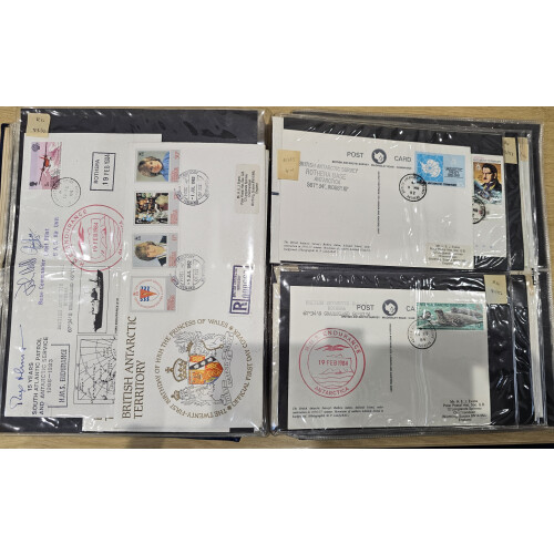 Collection of covers and some FDCs with a huge variety of research station cancels / cachets includes some attractive combinations from the QEII defin issues noted ADELAIDE ISLAND (c32), ROTHERA POINT (23), neatly arranged in a cover album, fascination collection. (c75 covers).