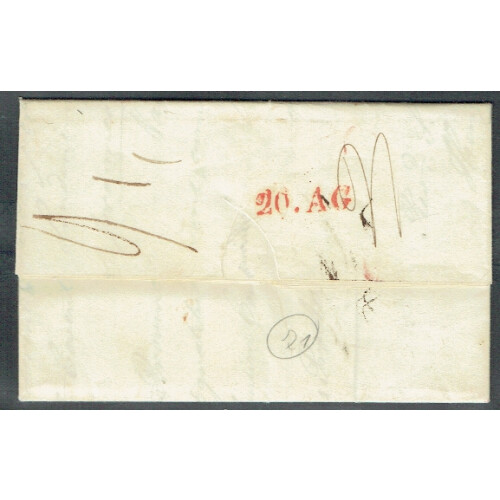 1839 Incoming Mail to Torino from Hinckly UK sent Franco Fussen with oval red two line h/s FRANCO FUSSEN and large framed LT in red, alongside P.P framed h/s in red and MALINES Belgium transit cds in red. Scarce letter.