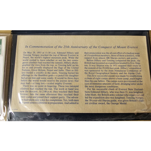 1978 Solid Silver Coin cover signed by Edmund Hillary and Tenzing Norgay with two Nepalese stamps tied FDI oval cancel, fine, in original folder with printed card. Issued by he Franklin mint.