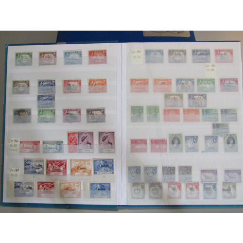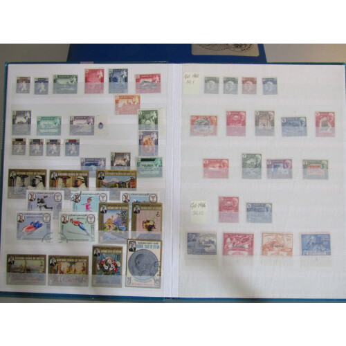 Stockbook 1937 onwards mint and used with better pickings incl 1937 to 1r mint (Cat £127), 1939 set 13 mint (Cat £130), 1948 RSW set U/M (Cat £40), used R10 CDS (Cat £55), 1951 Surcharge set mint (Cat £90), Kathiri state of Seiyun; 1942 set mint (Cat £70), 1951 set (Cat £55), Quaiti State in Hadhramaut 1942 set (Cat £70), then few S. Arabia issues and Aden 1953 airmail cvr etc, (Approx 330).