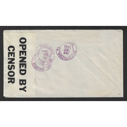 1940 (19 Jan) Censored regd cover to USA bearing multi franked GV 2c x 3, GVI 1c & 3c tied REGISTRATION BELIZE / BRITISH HONDURAS. With OPENED BY / CENSOR / BRITISH HONDURAS censor label at left. Little type CL1.