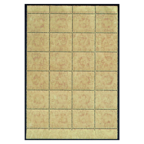 1919 6c pale scarlet in a left marginal block of 24 (gutter on right side) unmounted mint showing watermark sideways variety. Fine, SG 305a. Scarce multiple.