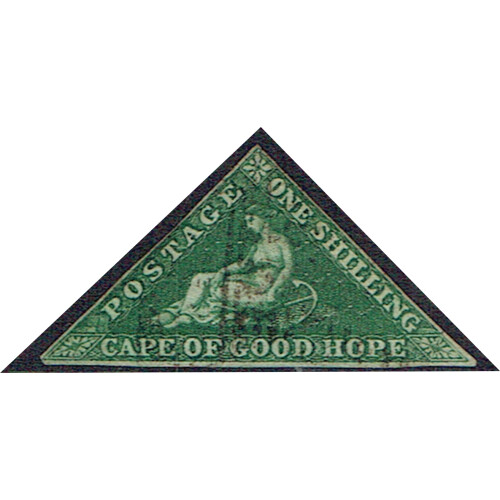 1859 1s deep dark green a very fine used example with close cut three margins and neatly struck cancel, SG 8b. Cat £650.