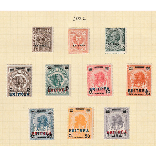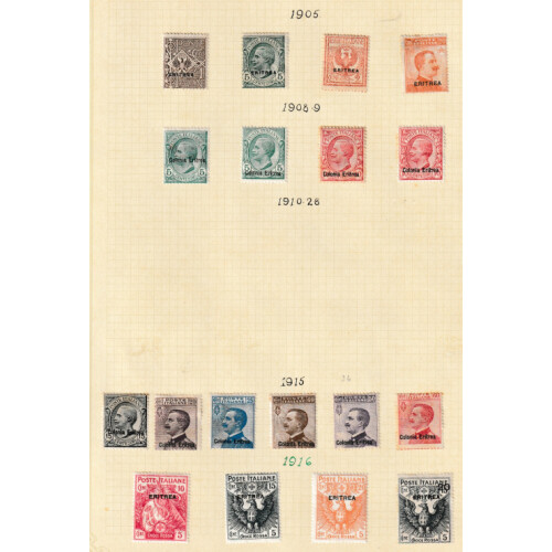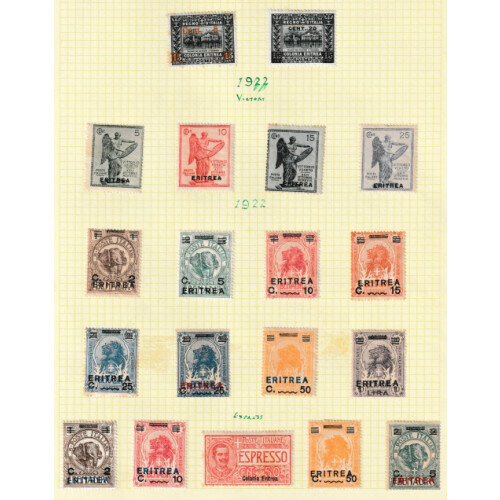 ERITREA: Useful mint collection on leaves including 1895 to 45c, 1903 10c red (Cat £100), 1916 Red Cross set, 1922 surcharge on Benadir set, 1923 Fascist set, 1927 Volta set, 1929 Montecassino set, 1930 Agricultural set, 1934 Colonial Exhib. set, Express Letter 25c & 30c (Cat £224), etc, huge catalogue value. (Approx 180).