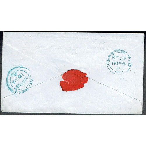 1855 1d red-brown pl.40. Very fine used example (CH), neatly tied to a clean cover by Hull '383' type C/R1 spoon duplex for 27th September 1856. Addressed to Bakewell with blue Chesterfield and Bakewell backstamps. SG Spec. C8 (1).