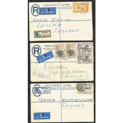 SPECIMEN Overprints on four Queen Victoria, two EDVII, four GV postal stationery cards and registered envelopes. Includes QV ½d green reply paid card printed Specimen diagonally on both parts, ½d green single card, ½d green newspaper wrapper, 2d grey Registered envelope, EDVII ½d green card, ½d green reply card, George Fifth ½d green reply card, ½d green single card, 1½d red single card, ½d green newspaper wrapper each with SPECIMEN diagonally across the centre in black. Nice group of 11 Specimen items.