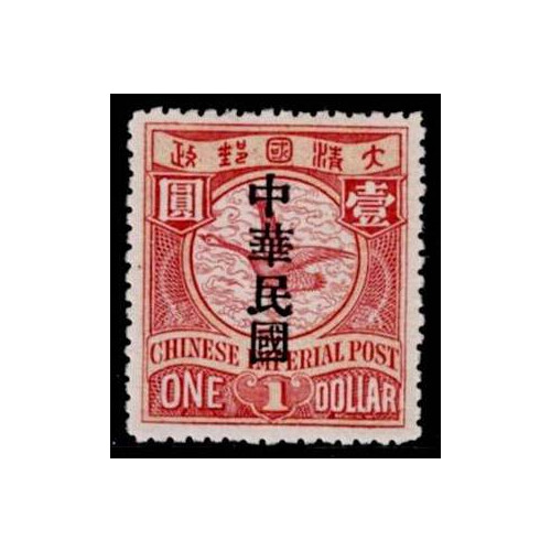 1912 Overprinted at Shanghai $1 red and flesh vertical ovpt type 38 mint, hinge remains, SG 204.