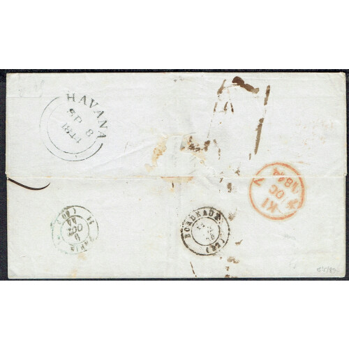 Great Britain P.O. Abroad: 1844 Entire Letter Havana to Bordeaux with neat HAVANA double arc d/s on reverse, sent Steamer Severn, and manuscript 40c charge mark, boxed COLONIES & c ART 12 in red treaty mark alongside. Sent via London, small faults. Crisp Havana cancel.