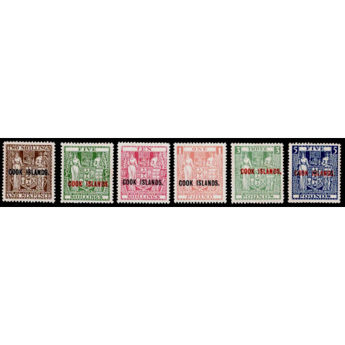 1943-54 Postal Fiscal Stamps of NZ set of six hinged mint to £5, sound, SG 131w/136w.