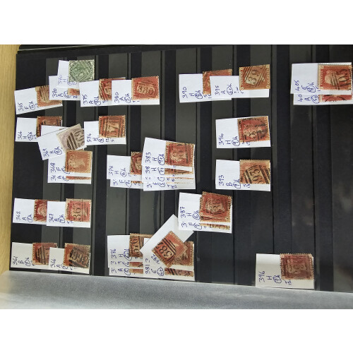 1864-79 ENGLAND & WALES POSTMARKS Approx 750+ 1864-79 1d plates and odd other arranged in office order incomplete from number 2 partly complete through to 987, then code numbers A, B, C, D, E, F & G, etc stamps mainly fine used. STC £2000+.