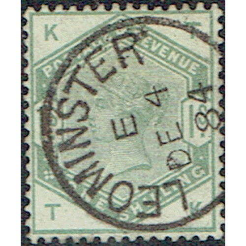 1884 1sd green (good colour) a neat example with superb cds cancel of LEOMINSTER, fine, SG 196.