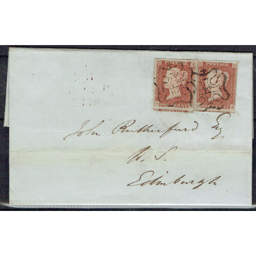 1845 (23 Jun) Cover sent locally in London bearing 1841 1d red-brown (LA) showing left hand part inscription ...the labels abo{ve} on bluish paper tied 71 numeral cancel and T.P / Holborn St, red d/s on reverse 10 Fn 10, JU23 / 1845. Few marks or winkles, nice imprint on cover.