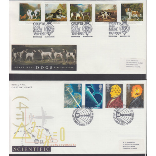 1991-1993 First Day Covers useful small collection with special cancels incl 1991 Crufts, Science Marconi, Soft Moon Landing Jodrell Bank, Sport Cardiff Arms, Roses Truro, Last Dinosaur, 1992 High Values £1-£5 Windsor illus set, etc to 1993, Bradbury cat £285. (28).