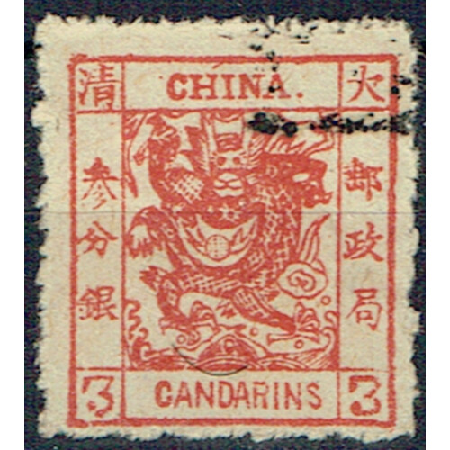 1883 (Mar) 3ca pale red sound used forgery with black incomplete corner cancel, usual rough perfs with four pearls, taken 'as is'. SG 8a var.