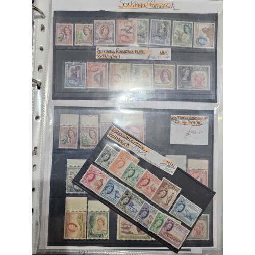 British Commonwealth - An extensive QEII stock of unmounted mint and mounted mint sets neatly arranged and priced up on album pages and Hagners in mounts for countries B to Z includes many of the better 1960s sets complete to top values noted Bermuda 1953 set, Morocco Agencies, Falkland Is. 1960s Birds set U/M (Cat £180), Gibraltar 1960 set U/M (Cat £85), Malta 1956 set U/M (Cat £140), North Borneo 1961 set (Cat £180), Rhodesia & Nyasaland 1959 set U/M (Cat £130), St Helena 1961 set incl both papers for £1 (Cat £125), Sarawak 1955 set mint (Cat £110), Singapore 1955 set U/M (Cat £150), Br. Solomon Is., Somaliland Prot. 1953 set (Cat £130), S. Rhodesia 1953 set U/M (2, cat £100 each), Swaziland 1956 set U/M (Cat £120), Tristan Da Cunha 1954 set, 1961 New Currency set, Turks & Caicos 1957 & 1960 sets, plus many more, enormous catalogue value. 100s.