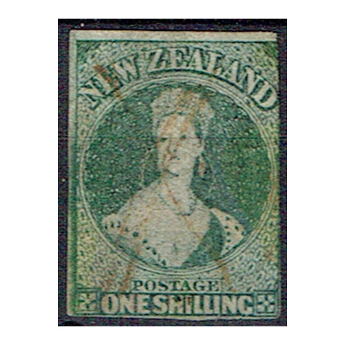 1864 Wmk Star 1s deep green fine used pen cancel and two good margins neatly cut, SG 46 Cat £500.