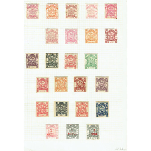 Imperf and perf mint range - 1886-92 Album page of perf issues to 8c green, surcharges 1 Cent on 4c, 1 Cent on 5c slate. Then a range of imperf singles values to 10c (8 different), taken as printers waste or forgeries. (24).