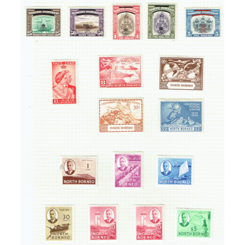Mint collection on three album pages including 1947 GR Ovpt set 15 (SG 335/349 Cat £110), 1950 $5, 1955 $2, 1944 Jap Occup. 2c, etc. (45).